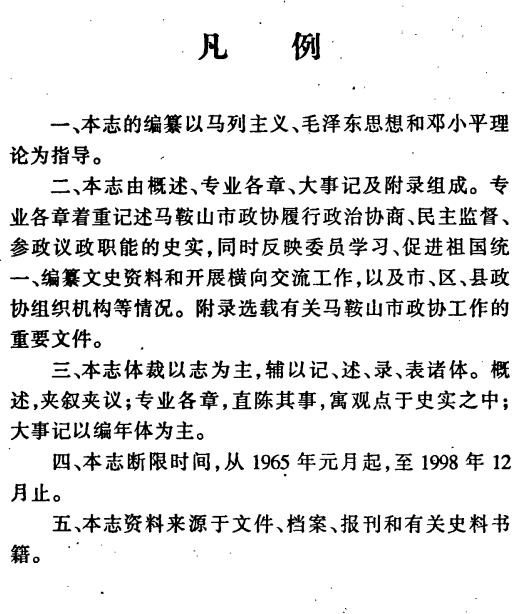 全书初版包含政治协商、民主监督等核心职能实践记录,设置“大事记”梳理关键事件。分类编码为D05。续编工作与《马鞍山文史》编纂同步推进,持续完善地方政协文史资料体系。本志记述了马鞍山政协组织发展的历史以及主要工作情况和历次会议情况等。