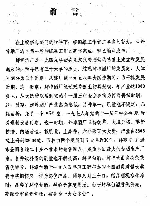 蚌埠酒厂志系统记述安徽省蚌埠酒厂的历史沿革、生产管理及企业发展状况。全书共分十章,涵盖领导体制、生产流程、管理体系等内容,并附有企业大事记、人物传记及历史资料。