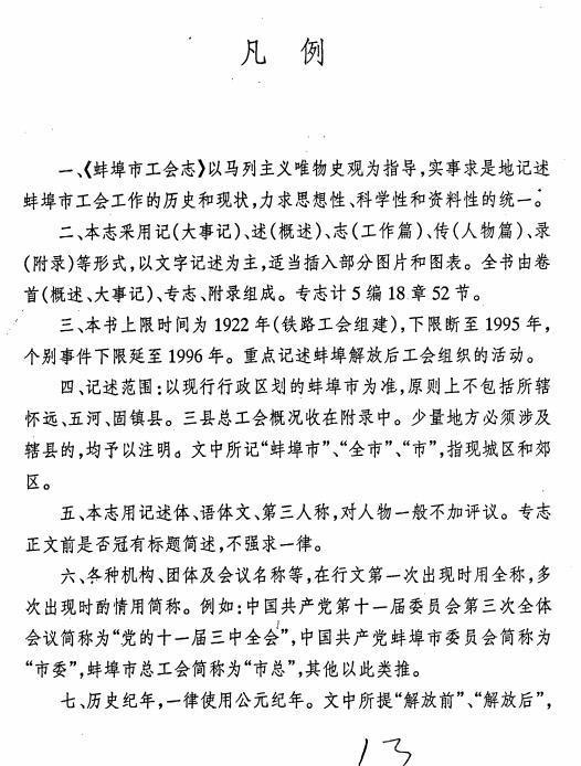 该书共分五编,涵盖工会组织架构、工人运动发展、工会自身建设、附属事业及工运人物事迹等内容,通过大事记、照片等形式呈现历史脉络。重点记述市级工会组织变迁、历届代表大会、职工民主管理及劳动竞赛活动,并收录三县总工会发展及工会所属文化宫、职工大学等实体机构沿革。作为地方行业志,其兼具史料性与工具性,为研究蚌埠工运史提供基础文献。