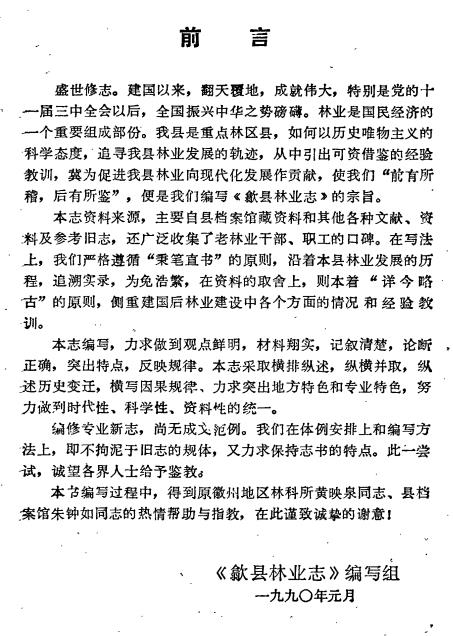 《歙县林业志》是一部记载安徽省黄山市歙县地区林业历史与现状的志书,内容涵盖该县森林资源、林业管理、生态保护、木材利用及林业发展历程,全面展示了歙县林业发展与绿色生态建设的成就与挑战,是了解和研究歙县林业发展不可多得的资料性文献。