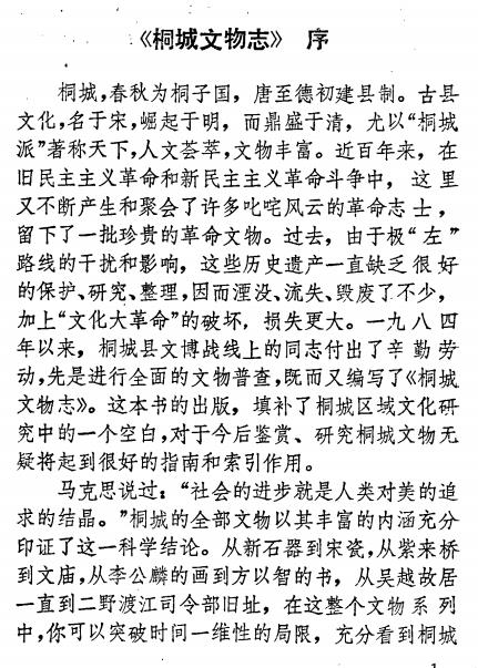 桐城县文物志 序