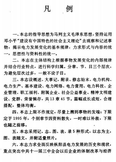 本志包括电力机构、电力生产、基本建设、电力网络、电力营用、电力科技等章。