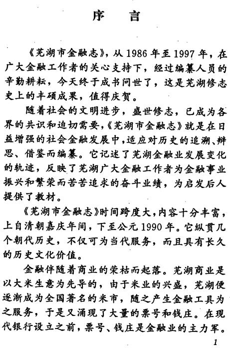 本志记述了芜湖市金融机构及其各项业务发展的历史与现状。