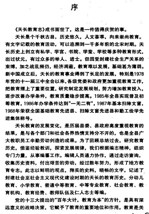本志记述了天长市教育事业发展的历史与现状。包括幼儿教育、小学教育、普通中等教育、中等专业教育、社会教育等。